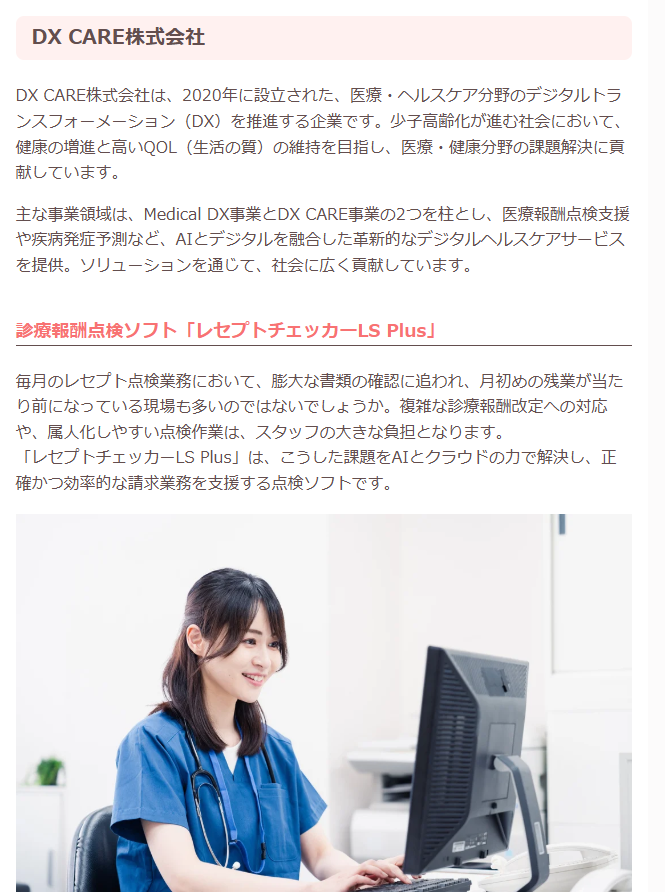 当社の診療報酬点検ソフト「レセプトチェッカーLS Plus」について紹介されています。是非ご覧ください。
